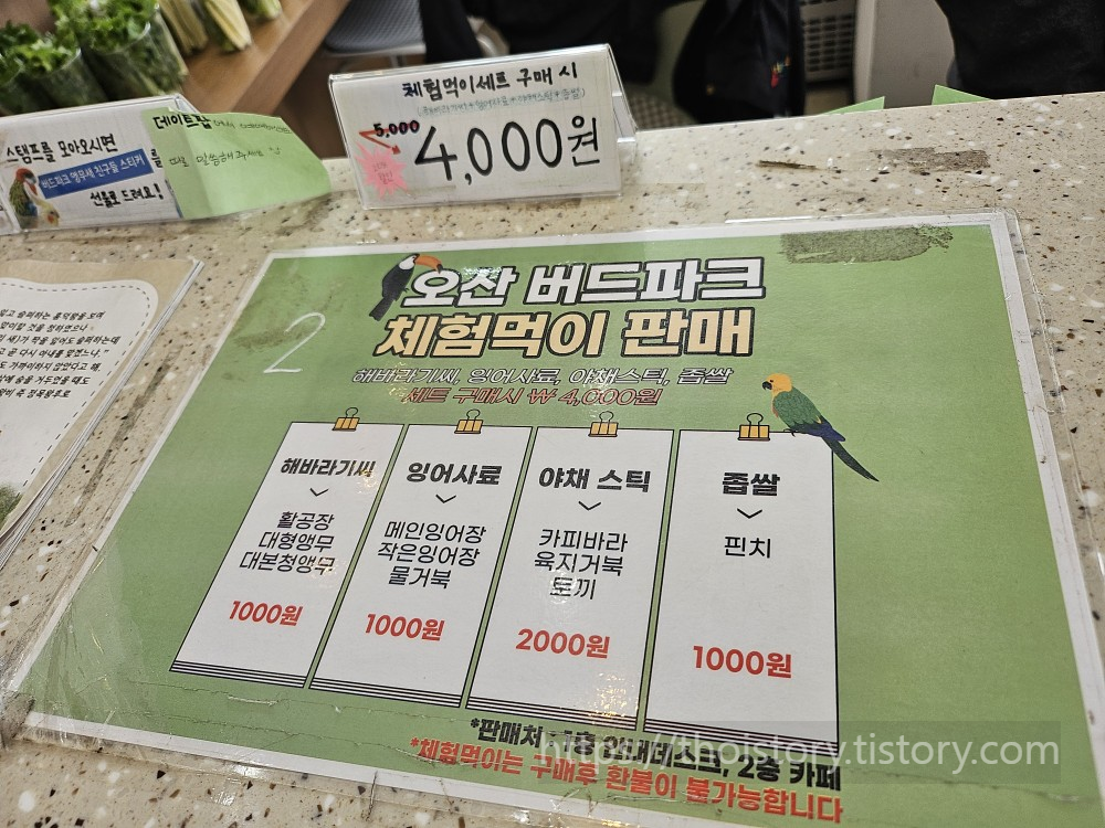 들어가자마자 1층 안내데스크가 있는데 굉장히 마케팅을 잘하는 곳이였다. 무조건 먹이 체험은 할수밖에. 짤짤이라 안할수가 없다. 판매처는 1층 안내데스크와 2층 카페. 구매 후 환불은 안된다고 한다.