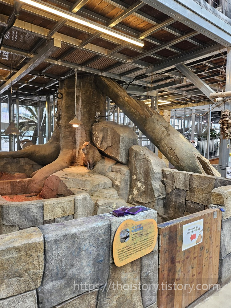 1층 공간이다. 숲속에 온듯한 분위기. 카피바라가 귀엽다. 새를 보러 왔지만 귀여운 카피바라 모습에 발걸음을 한번 멈추게 된다.